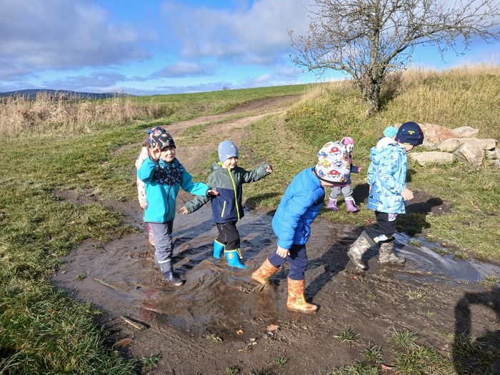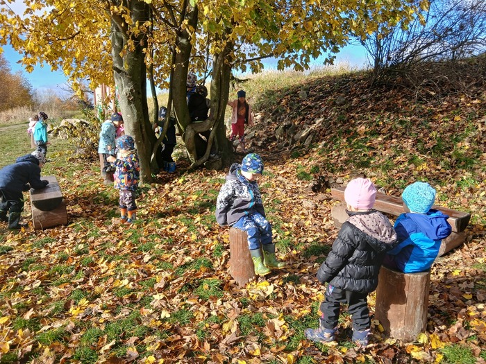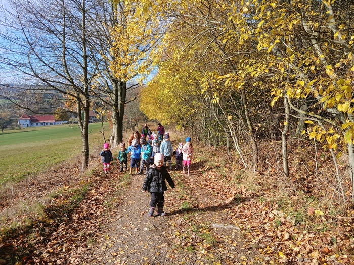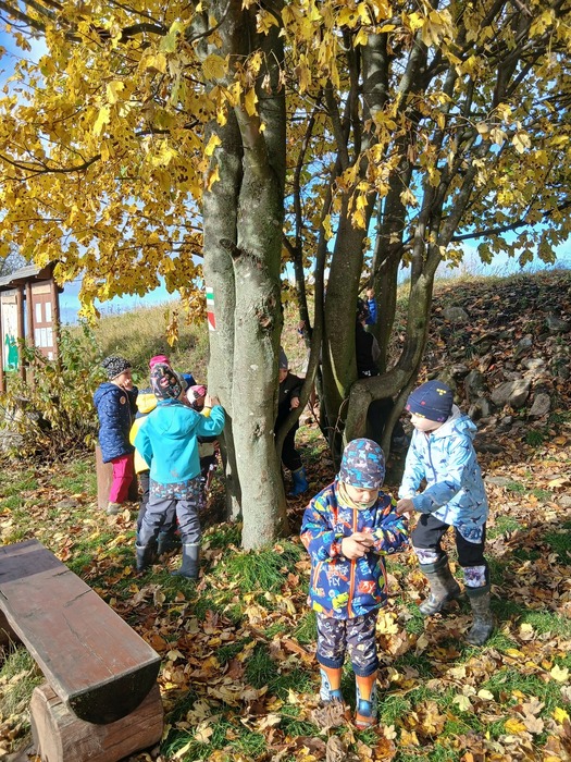Listopad nám přinesl spoustu krásných chvil venku! Děti si užívaly podzimní přírodu při vycházkách do okolí – pozorovaly měnící se barvy stromů, sbíraly listy, kaštany, šípky a učily se poznávat stromy a keře