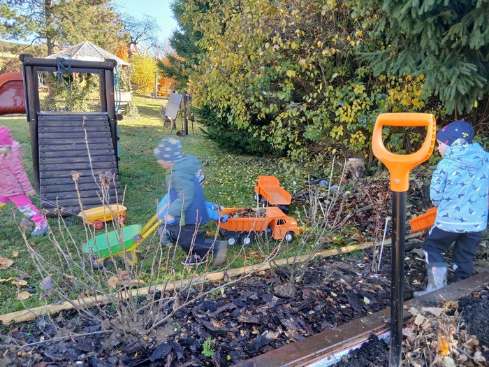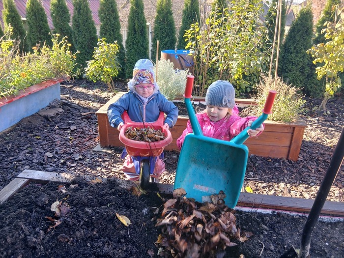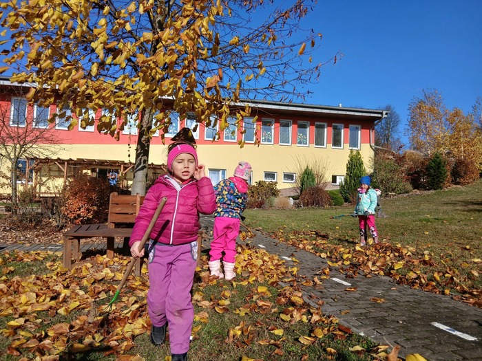 Podzimní práce děti bavily – nejen že si procvičily ruce i nohy, ale hlavně měly radost z toho, že pomáhají a vidí, jak se příroda pomalu ukládá k odpočinku.